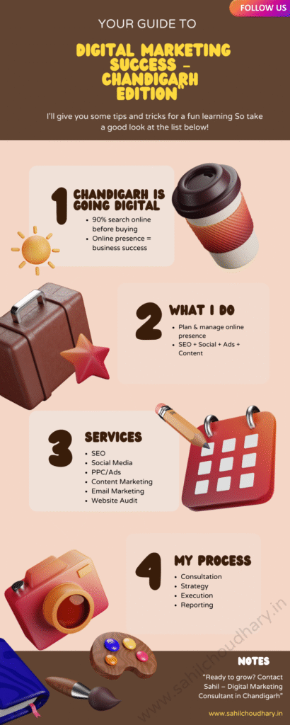 I’m Sahil, a Digital Marketing Consultant in Chandigarh. Whether you need SEO, social media marketing, paid ads, or content strategy — I’m here to help you get real results.